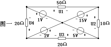 1. 电路分析: 这是一个对称的桥式电路,电源电压加在上下两端。 2. 设电源电压为 U(假设为图示的整数值,如 10V),电阻为 R(如 50Ω)。 3. 利用对称性: 左右两侧支路参数完全相同,因此电流会平均分配。 4. 计算分压: - 上半部分两个电阻串联(或并联后串联),根据分压公式计算。 - 如果电路完全对称,中间连接点的电位往往是电源电压的一半。 5. 结论: 若电阻值相等,则各电阻平分电源电压。