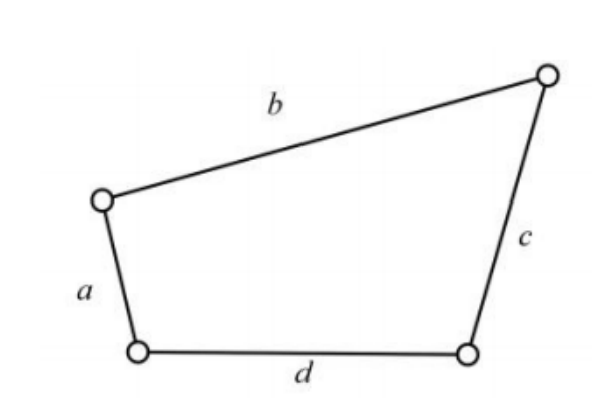 铰链四杆机构中, \(a=60mm, b=150mm, c=120mm, d=90mm\) (如图所示),