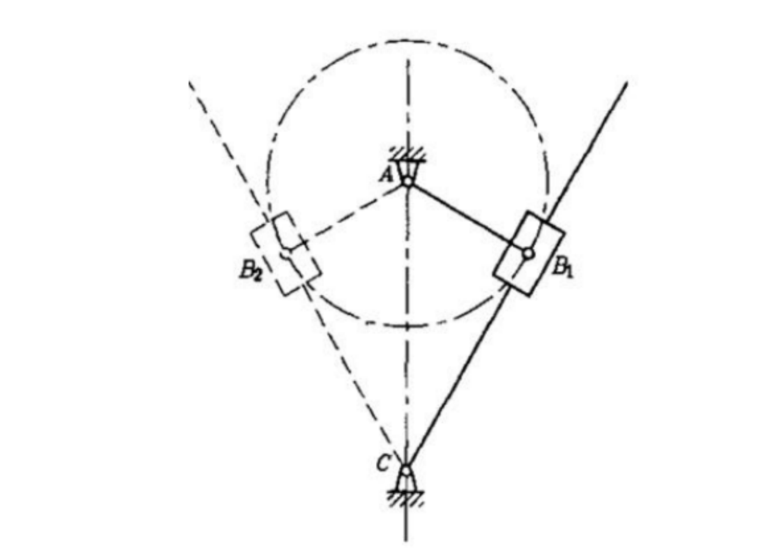 当机构的传动角 \(\gamma\) 等于 \(0^{\circ}\) (压力角 \(\alpha\) 等于 \(90^{\circ}\))时,机构所处的位置称为 死点 位置。